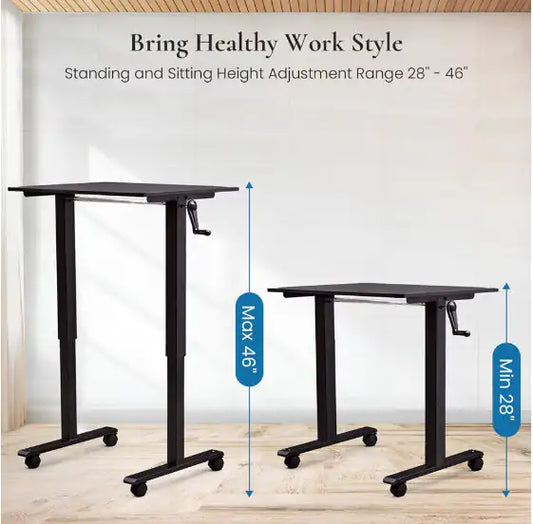 Hand-Crank Adjustable Office Desk Height Adjustable, With Flat Metal Legs Perfect For Home, Office, Gaming, Or Study Use